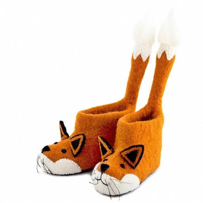 De skønneste håndlavede hjemmesko med en sjov ræv fra engelske Sew Heart Felt.